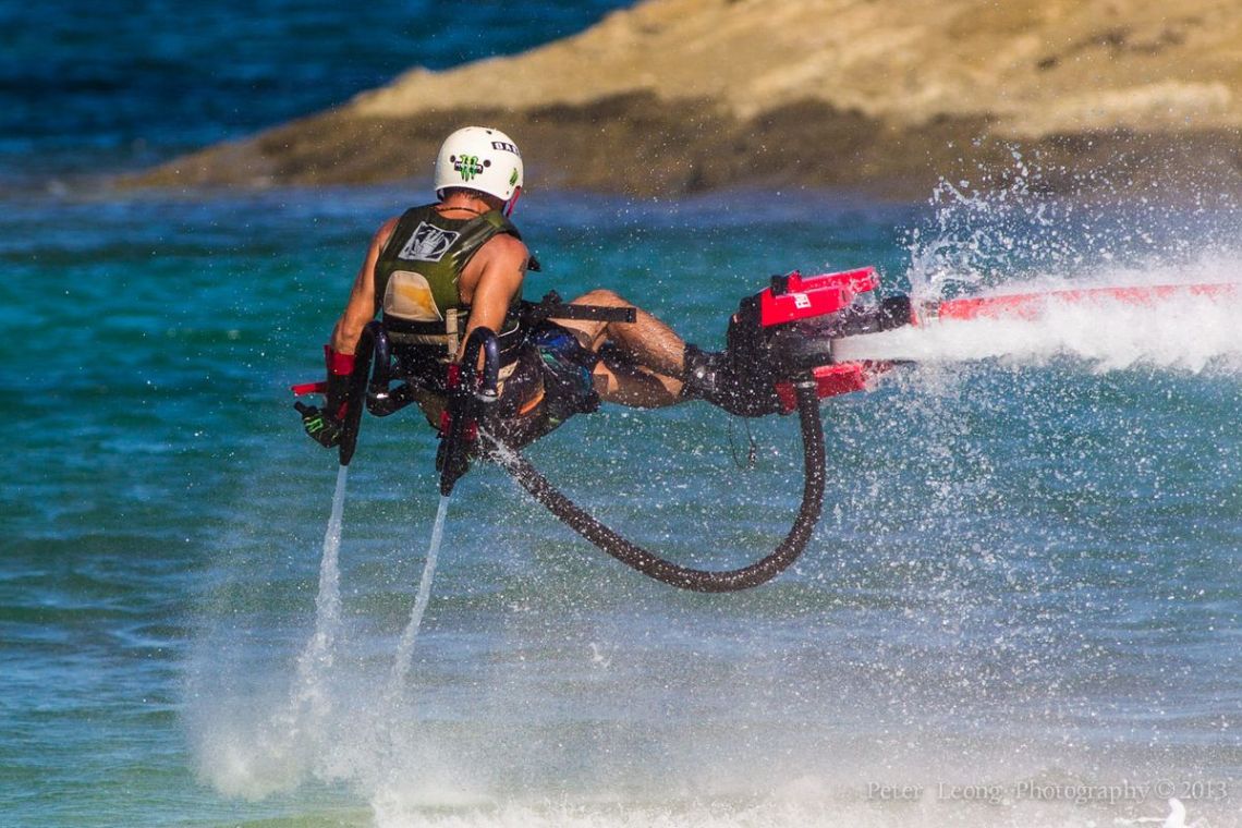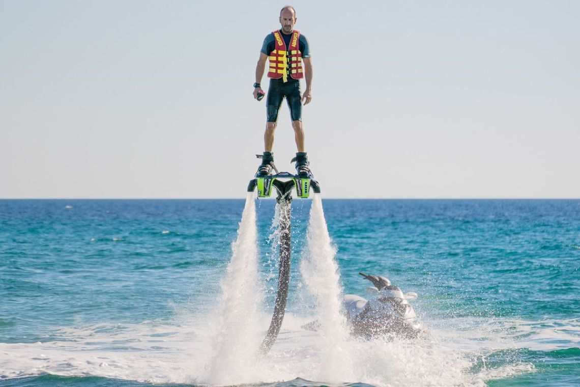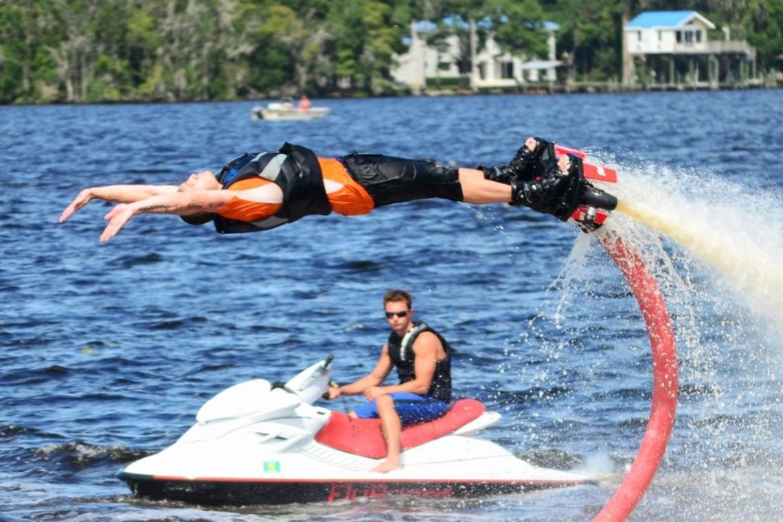 Khi mô tô nước tăng ga, lượng nước áp lực lớn sẽ được đẩy xuống, tạo lực nâng đưa người chơi bay cao từ 1 đến 10 mét trên mặt nước. Người điều khiển có thể đứng thẳng, xoay người, lướt, nhào lộn và thậm chí cắm đầu xuống biển như một chú cá heo – tất cả đều vô cùng mãn nhãn.